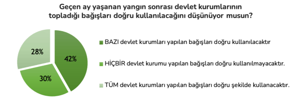 Devlete yüklenen büyük sorumluluğa rağmen devlet kurumlarının bağışları doğru kullanacağına yönelik kanaatin düşük olması dikkat çekiyor. (%72)